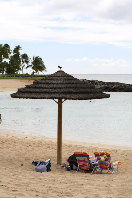The Ko'olina Lagoons are by far my favorite beaches in Oahu. They are in my opinion the most beautiful, they are kept up really nice, there aren't weirdos, and best of all, the waves are big where you are fearing for your kids' lives the whole time. It is very family friendly. We have spent three or four days here, and I love it. They have these great hut covers throughout the beach which provides shade from the sun when you need it, which is especially nice with a baby.